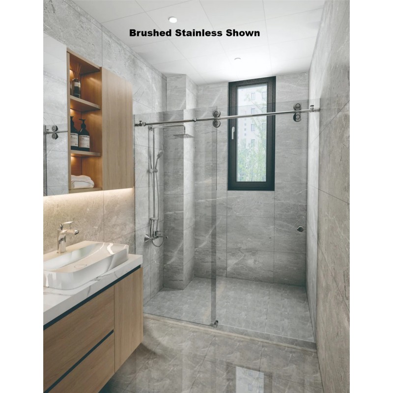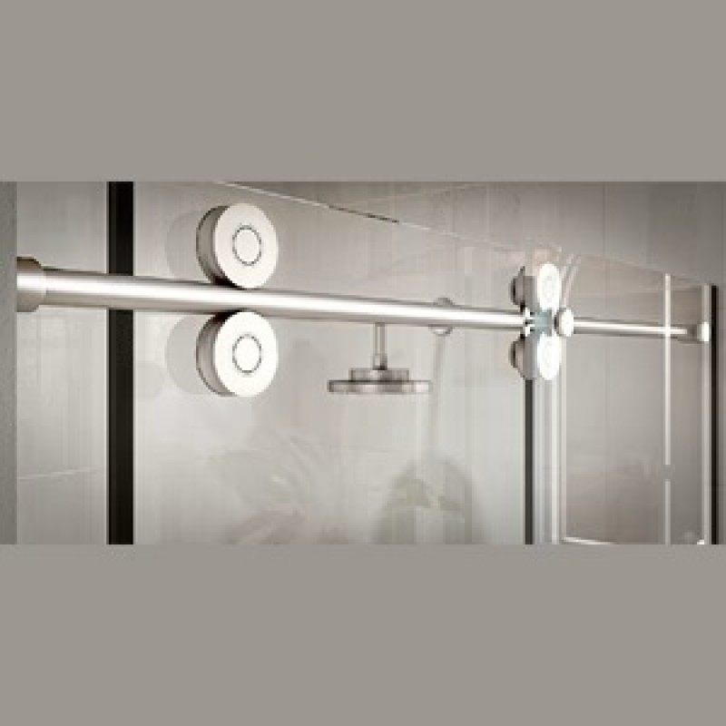 The BBAHI Aria Vetri CRES circular shaped Header and the round Rollers of the Sliding Door System are the perfect complement to each other. The use of minimal hardware gives a modern looking shower door system These quality Rollers assure quiet door travel and make the door easy to slide. The CRES Series Sliding System accommodates 3/8"or 1/2" thick tempered glass and the system allows that the fixed and sliding panels are reversible for installation as desired.